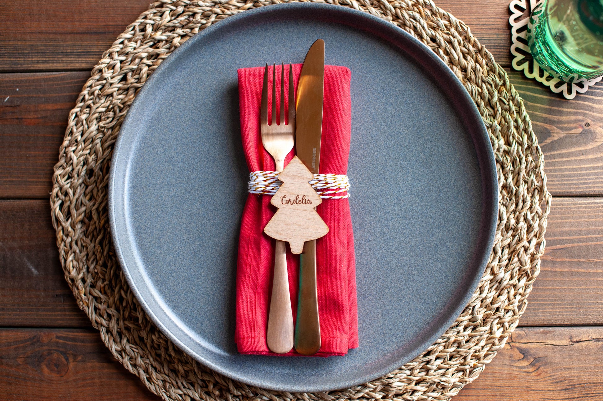 Each little Christmas tree is custom-made with your guest’s name, adding a heartfelt touch to every seat at the table. Carefully laser cut from high-quality wood or acrylic, these adorable decorations bring a warm, handmade feel to your festive celebrations.