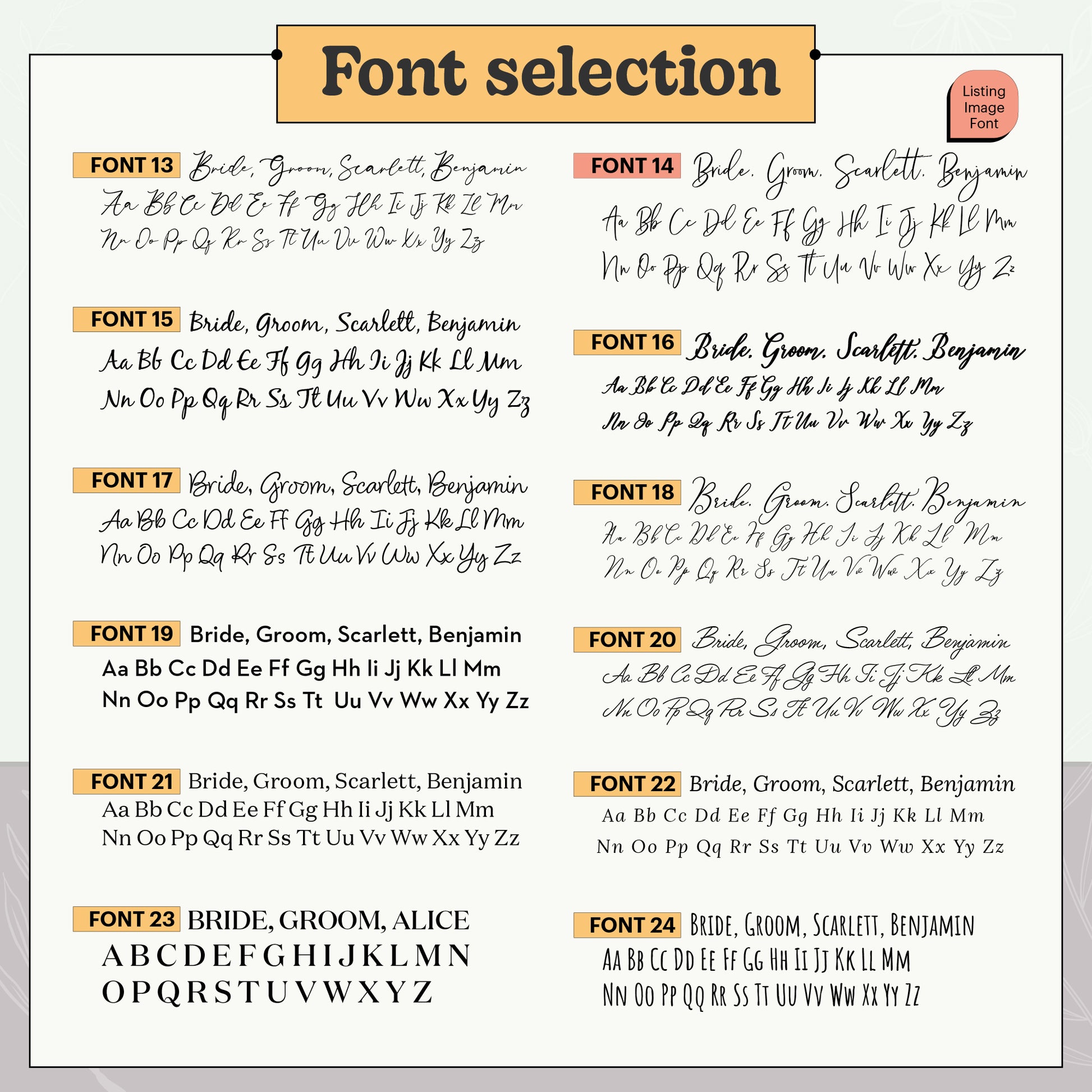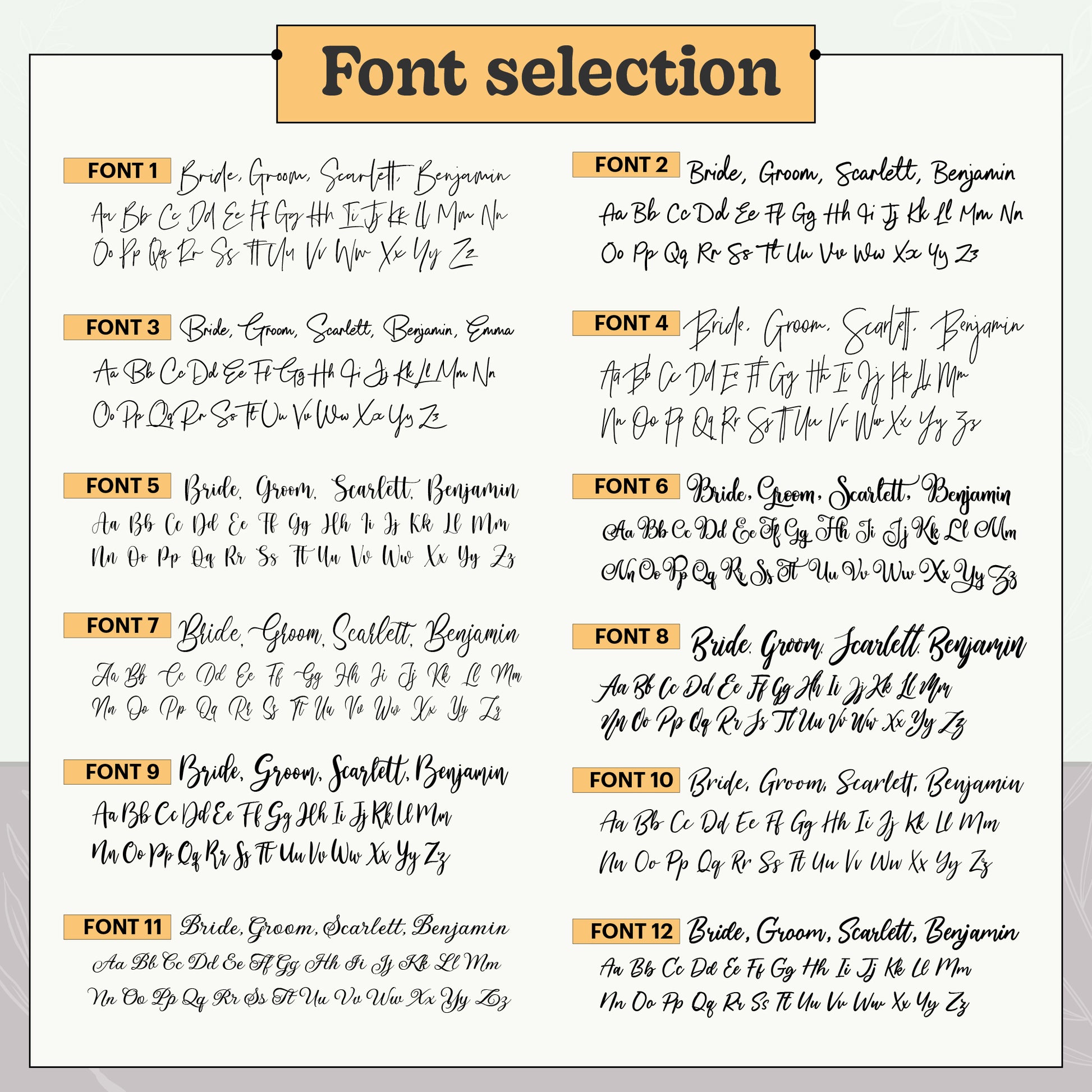 - Personalisation: Guest names or custom text